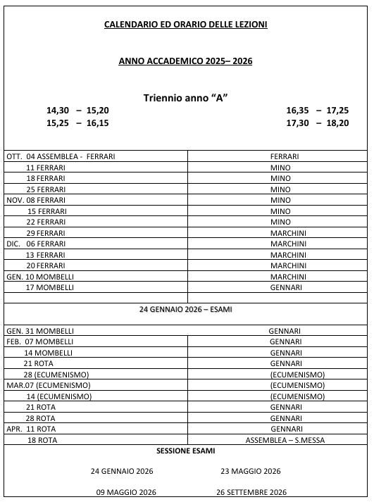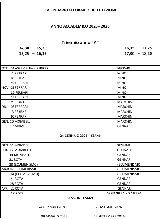 Calendario 2025-2026 - Scuola teologia per laici Brescia